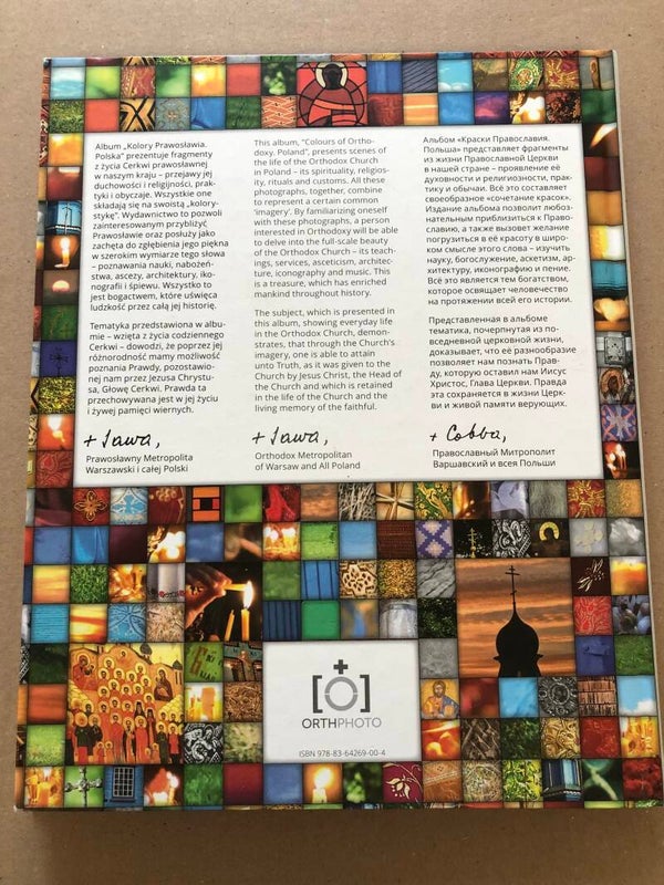 "Kleuren van de orthodoxie. Polska” in albumvorm werd oorspronkelijk in 2011 gepubliceerd als een editie van de Warschau-orthodoxe Metropolis in samenwerking met de website www.orthphoto.net. Deze 3e editie verrijkt de vorige met nieuwe foto's. Het geheel is een buitengewone reis over de orthodoxie in Polen. 146 foto's van 57 fotografen tonen Orthodoxie gezien door de lens, maar ook door het hart. Met fotografie kun je veel vertellen. De auteurs van de foto's doen dit met passie en richten zich op het tonen van de schoonheid van heilige kunst en de spiritualiteit van de Orthodoxe Kerk in Polen. Passie is moeilijk en vereist geduld, gevoeligheid en tact. Dankzij dit wordt het mogelijk om korte momenten uit de geschiedenis vast te leggen en deze vrijwel voor onbepaalde tijd uit te breiden, waardoor momenten blijvend worden en een inleiding zijn tot diepere religieuze en spirituele reflectie.