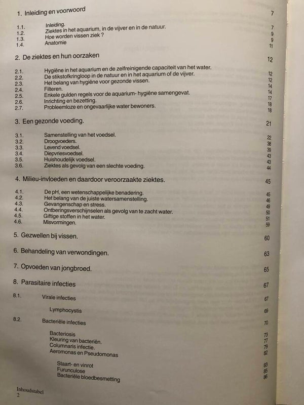 De schrijver deelt zijn ervaringen voor andere liefhebbers in bruikbare informatie en raadgevingen, vooral op het gebied van het gezond houden van vissen en het behandelen van vissenziektes. Vissen worden hoe langer hoe meer aangezien als huisdieren en de echte liefhebbers getroosten zich geld noch moeite om hun dieren in optimale conditie te houden.