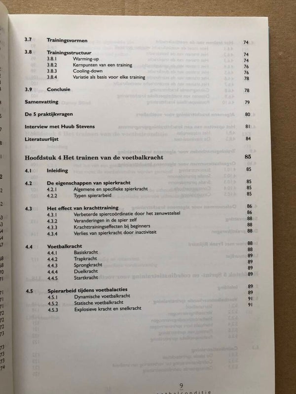 In dit eerste complete naslagwerk over de voetbalconditie wordt door verschillende experts ingegaan op het trainen en medisch begeleiden van voetballers. Onderwerpen als conditietraining, voeding, fysiotherapie en blessurepreventie komen uitvoerig aan bod. Om de koppeling van theorie naar praktijk te maken, wordt aan het einde van elk hoofdstuk antwoord gegeven op de door voetbaltrainers meest gestelde vragen. Daarnaast komt een aantal bekende spelers en trainers via interviews aan het woord over de verschillende onderwerpen.