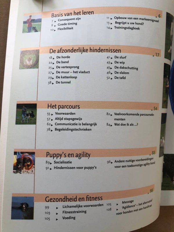 Dit boek vertelt hoe u uw hond stap voor stap kunt aanleren om met slechts enkele aanwijzingen de afzonderlijke hindernissen van het parcours - zoals de wip, de tunnel of de slalom - foutloos te nemen. In een volgend stadium leert u hoe u de hond kunt begeleiden en indien nodig bijsturen langs een volledig parcours. En ten slotte leest u hoe u zichzelf en uw hond kunt voorbereiden op een wedstrijd. Daarnaast wordt ook het belang van de juiste hondenvoeding en fitnesstraining besproken en verneemt u hoe u uw puppy met agility vertrouwd kunt maken.