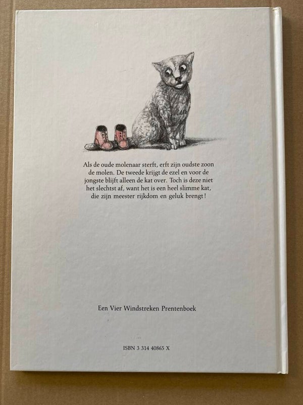 Als de oude molenaar sterft, erft zijn oudste zoon de molen. De tweede krijgt de ezel de derde de kat. Het is een hele slimme kat die zijn meester rijkdom en geluk brengt.