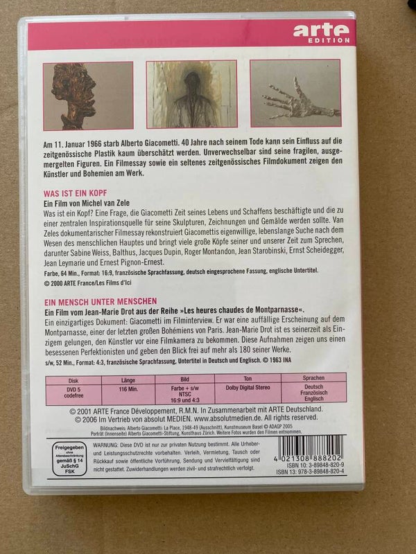 Ein einzigartiges Dokument: Giacometti im Filminterview. Er war eine auffällige Erscheinung auf dem Montparnasse, einer der letzten großen Bohémiens von Paris. Jean-Marie Drot ist es seinerzeit als Ein-zigem gelungen, den Künstler vor eine Filmkamera zu bekommen. Diese Aufnahmen zeigen uns einen besessenen Perfektionisten und geben den Blick frei aul mehr als 180 seiner Werke.