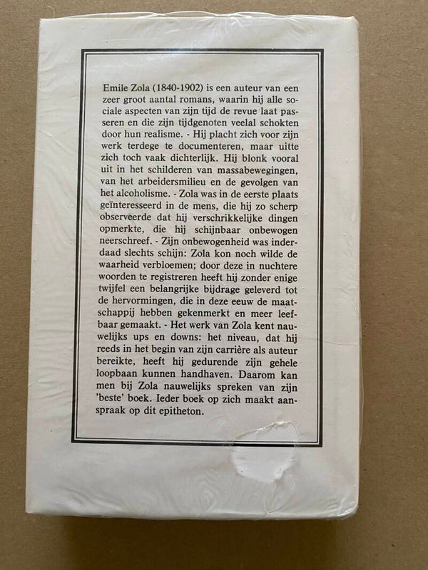 Emile Zola (1840-1902) is een auteur van een zeer groot aantal romans, waarin hij alle so-ciale aspecten van zijn tijd de revue laat pas-seren en die zijn tijdgenoten veelal schokten door hun realisme. - Hij placht zich voor zijn werk terdege te documenteren, maar uitte zich toch vaak dichterlijk. Hij blonk vooral uit in het schilderen van massabewegingen, van het arbeidersmilieu en de gevolgen van het alcoholisme. - Zola was in de eerste plaats geïnteresseerd in de mens, die hij zo scherp observeerde dat hij verschrikkelijke dingen opmerkte, die hij schijnbaar onbewogen neerschreef. - Zijn onbewogenheid was inder-daad slechts schijn: Zola kon noch wilde de waarheid verbloemen; door deze in nuchtere woorden te registreren heeft hij zonder enige twijfel een belangrijke bijdrage geleverd tot de hervormingen, die in deze eeuw de maat-schappij hebben gekenmerkt en meer leef-baar gemaakt. - Het werk van Zola kent nau-welijks ups en downs: het niveau, dat hij reeds in het begin van zijn carrière als auteur bereikte, heeft hij gedurende zijn gehele loopbaan kunnen handhaven. Daarom kan men bij Zola nauwelijks spreken van zijn 'beste' boek. Ieder boek op zich maakt aan-spraak op dit epitheton.