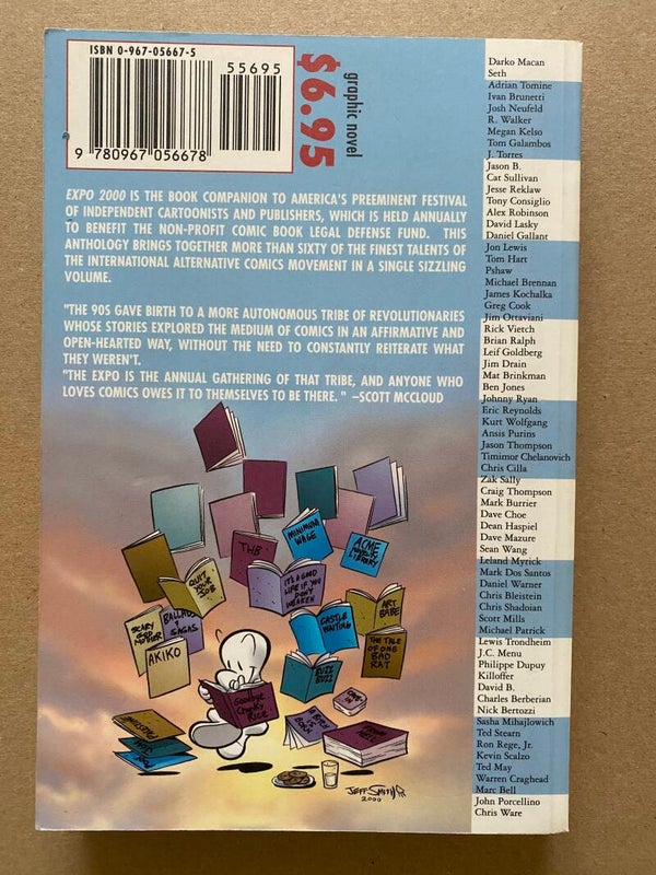 Expo 2000 is de begeleidende bundel bij SPX: The Expo, Noord-Amerika's belangrijkste forum voor alternatieve cartoonisten en kleine uitgevers. De editie van 2000 bevat artikelen en strips van de beste alternatieve cartoonisten van dit moment, waaronder Charles Burns (bedenker van de fantastisch griezelige strip Black Hole, veteraan van Art Spiegelmans RAW Magazine en covertekenaar voor onder andere The New Yorker en Time), Ivan Brunetti (Schizo), Shannon Wheeler (Too Much Coffee Man), Brian Ralph (Cave-In) en Craig Thompson (Good-Bye Chunky Rice). Maar dit zijn slechts enkele van de bijdragen aan deze volle bundel – met 240 pagina's is Expo 2000 een lijvige kost voor een koopje. Naast de stripverhalen zullen er ook vele artikelen over alternatieve strips van over de hele wereld te vinden zijn, onder redactie van Charles Brownstein. De combinatie van reportages en stripverhalen maakt Expo 2000 de Granta van de strips! De opbrengst van de verkoop van Expo 2000 komt ten goede aan het Comic Book Legal Defense Fund (CBLDF), een non-profitorganisatie die de vrijheid van meningsuiting in de stripwereld beschermt. Het CBLDF adviseert winkeliers over hun rechten onder het Eerste Amendement en betaalt de juridische kosten van winkeliers die worden beschuldigd van de verkoop van obscene en baanbrekende strips.