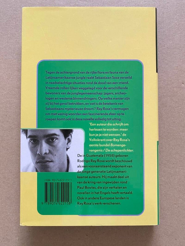 Tegen de achtergrond van de rijke flora en fauna van de Latijnsamerikaanse jungle raakt Sebastiaan Sosa verzeild in raadselachtige situaties rond de dood van een vriend. Vreemde rollen lijken weggelegd voor de verschillende bewoners van de junglegemeenschap: jagers, archeologen en westerse binnendringers. Rey Rosa’s vermogen om met weinig woorden een fascinerende sfeer te scheppen komt ook in deze novelle volledig tot uiting.