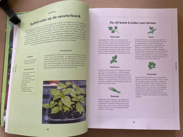 Dit boek staat boordevol ideeën voor wannabe tuiniers. Hoe weinig je ook van planten weet of hoe beperkt je ruimte ook is: met dit boek gaat het je lukken om je eigen voedsel te telen.