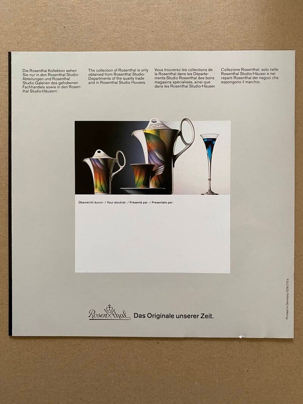 Met bijbehorende bijlage van zijn ontwerpen voor Rosenthal ( porselein)