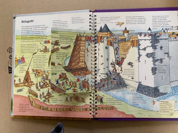 Reis terug in de tijd naar het kasteel van de baron en ontdek wie daar woont. Zal de baron een belegering overleven? Wie wint het toernooi en wat wordt er geserveerd tijdens het grote feestmaal? Ontdek allerlei wetenswaardigheden en doe de flapjes open om nog meer achtergrondinformatie te krijgen!