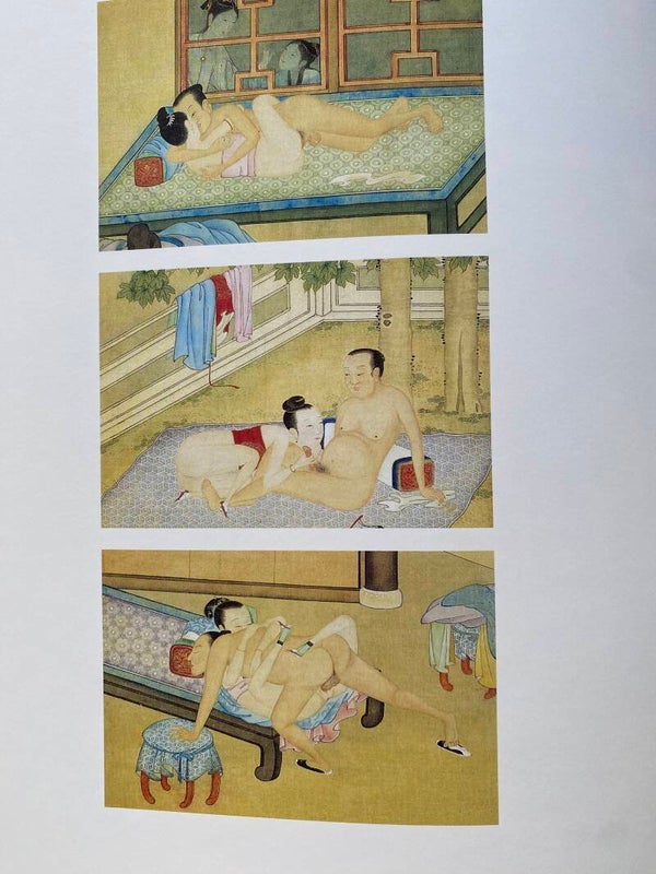 Across the whole period covered, a few things stand out. First is the whole tone of the works: they all depict affection between the players. Some of the pictures show an illicit love, or a senior wife unhappy at attention given to a concubine. None of scenes depict coercion or aggression, however. They are all about people happy together, or who were happy until found out. The second is the wide ranges of practices. Most scenes depict coition, in numerous, often improbable poses. There are also repeated themes of caresses, genital kissing, toys, multiple players or helpers, and same-sex couples. Although the male usually held the dominant position, nearly every practice was practiced for him and her both, by him and her both.