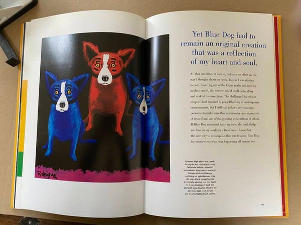 An American art and popular culture book which depicts seventy paintings featuring the Cajun character known as Blue Dog.