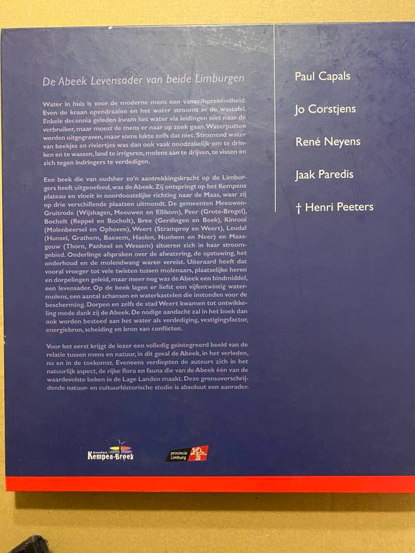 Een beek die van oudsher zo'n aantrekkingskracht op de Limbur-gers heeft uitgeoefend, was de Abeek. Zij ontspringt op het Kempens plateau en vloeit in noordoostelijke richting naar de Maas, waar zij op drie verschillende plaatsen uitmondt. De gemeenten Meeuwen-Gruitrode (Wijshagen, Meeuwen en Ellikom), Peer (Grote-Brogel), Bocholt (Reppel en Bocholt), Bree (Gerdingen en Beek), Kinrooi (Molenbeersel en Ophoven), Weert (Stramproy en Weert), Leudal (Hunsel, Grathem, Baexem, Haelen, Nunhem en Neer) en Maas-gouw (Thorn, Panheel en Wessem) situeren zich in haar stroom-gebied. Onderlinge afspraken over de afwatering, de opstuwing, het onderhoud en de molendwang waren vereist. Uiteraard heeft dat vooral vroeger tot vele twisten tussen molenaars, plaatselijke heren en dorpelingen geleid, maar meer nog was de Abeek een bindmiddel, een levensader. Op de beek lagen er liefst een vijfentwintig water-molens, een aantal schansen en waterkastelen die instonden voor de bescherming. Dorpen en zelfs de stad Weert kwamen tot ontwikke-ling mede dank zij de Abeek. De nodige aandacht zal in het boek dan ook worden besteed aan het water als verdediging, vestigingsfactor, energiebron, scheiding en bron van conflicten.