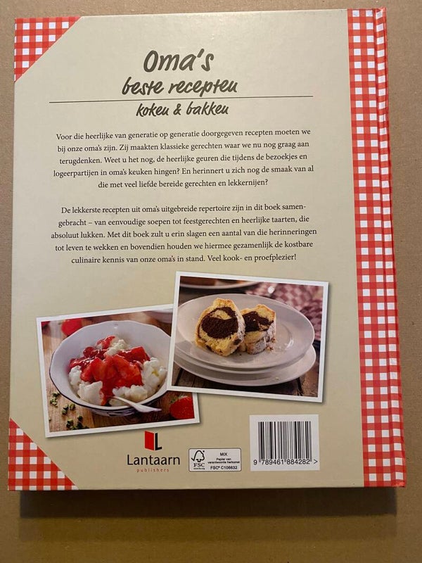 "Oma's beste recepten: koken en bakken" van Lantaarn Publishers is een kookboek vol nostalgische, klassieke gerechten en bakrecepten. Het bevat makkelijk te maken traditionele stamppotten, stoofpotten, soepen en vleesgerechten. De focus ligt op eenvoudige, goedkope en van generatie op generatie doorgegeven recepten.
