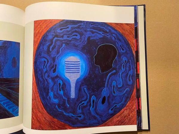 - Kleurgebruik: Zoals de titel "Blue Guitars" suggereert, domineert blauw zijn werk, wat de melancholische en door blues beïnvloede sfeer van zijn muziek weerspiegelt. Ook worden er andere diepe, vaak donkere tinten gebruikt om een 'noir'-achtige sfeer te creëren.
