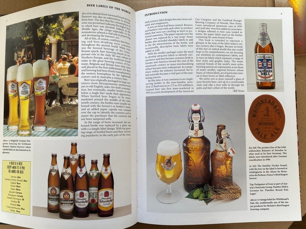 - Beer Labels of the World van auteur Bill Yenne is een rijk geïllustreerd naslagwerk uit 1993 dat een overzicht biedt van de wereldwijde biercultuur via etiketten. Het boek telt 128 pagina's en bevat meer dan 1.000 full-color bieretiketten uit diverse tijdperken en regio's.