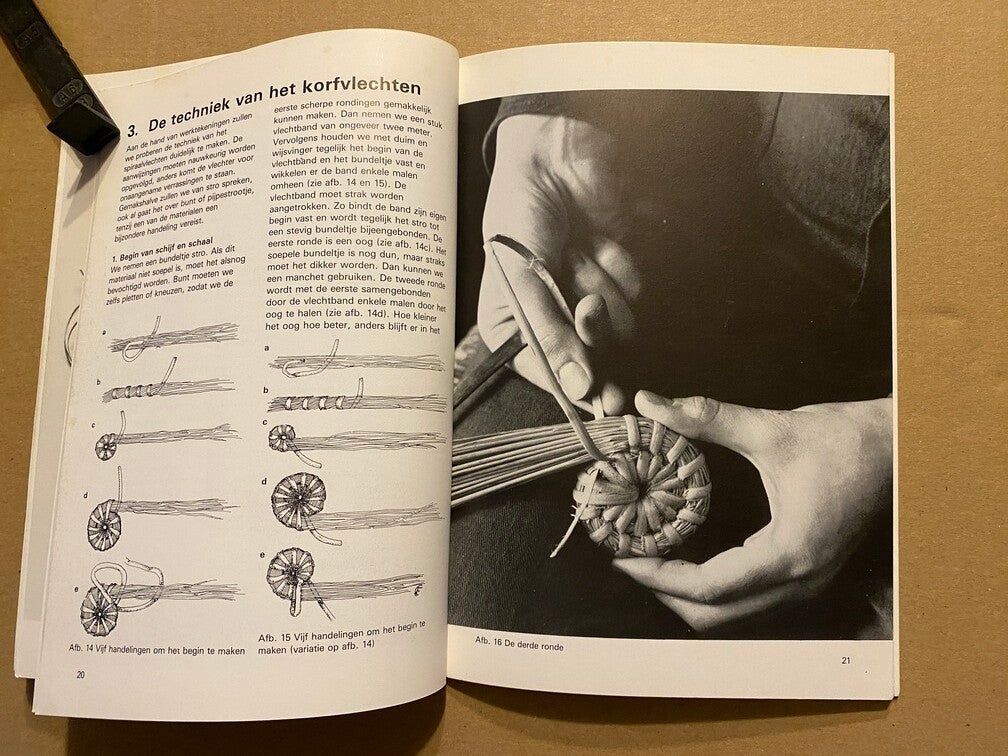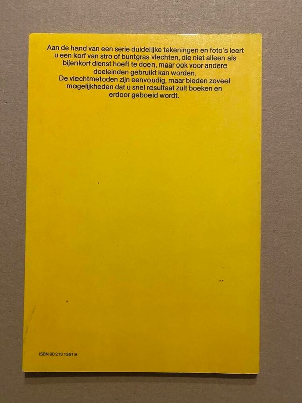 Aan de hand van een serie duidelijke tekeningen en foto's leert u een korf van stro of buntgras vlechten, die niet alleen als bijenkorf dienst hoeft te doen, maar ook voor andere doeleinden gebruikt kan worden.